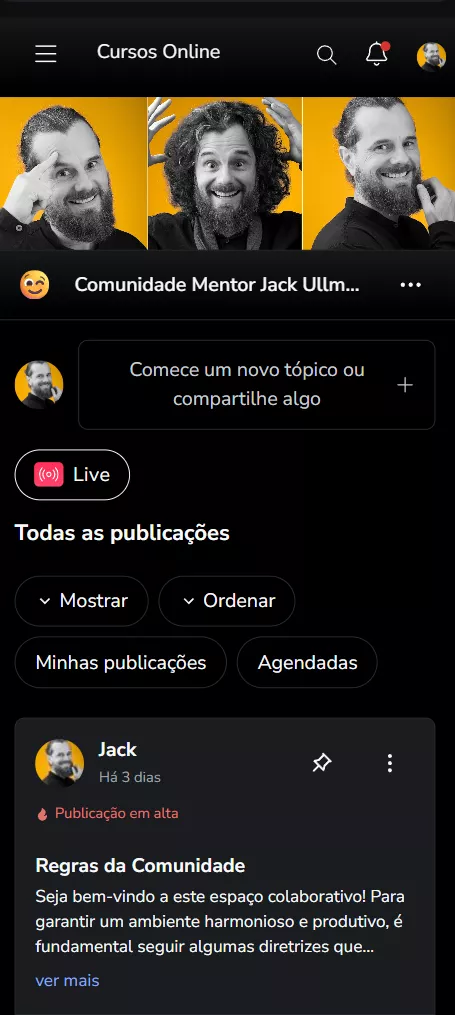 Sim. Você terá acesso ao grupo exclusivo do Mentor Jack Ullmann e poderá tirar dúvidas 24h por dia. Além disso, postamos conteúdos extras e fazemos lives periódicas para feedback.